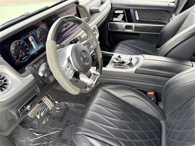 AMG® Brake Calipers in Red, AMG® Carbon Fiber/Microfiber Steering Wheel, AMG® Night Package, AMG® Night Package (P56), Brush Guard in Night Black magno, Exclusive Interior Package, Exterior Lettering in Black, Exterior Mirrors in Obsidian Black, G manufaktur Front Passenger Grab Handle Badge, Gunmetal Grey Front Grille, Mercedes-Benz Star in Black, Night Package - Magno (NPM), Night Package magno, Roof in Night Black Magno, Spare Wheel Cover in Night Black magno, Under Guard Protection Night Black magno, Wheel Arches & Bumpers in Black Magno, Wheels: 22" AMG® Matte Black Forged Monoblock.
